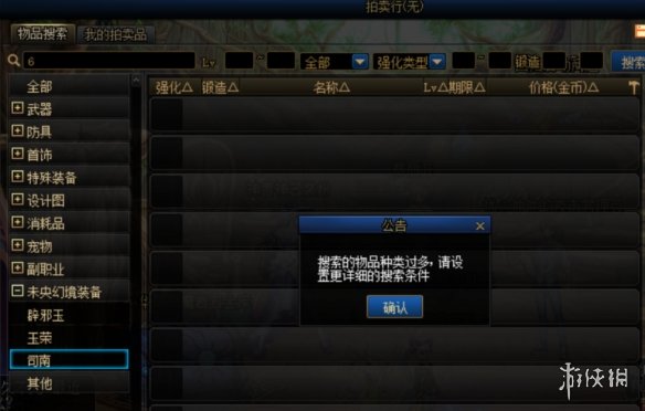 在我们购买司南时,如果我们想要直接购买某一阶司南(如6阶),在拍卖行直接搜索X阶是无法显示所有司南的。