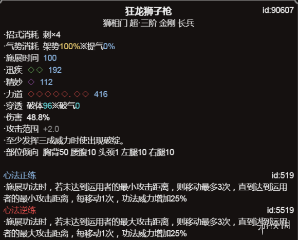 狂龙狮子枪攻击范围+2,施展速度100,已是佼佼者。