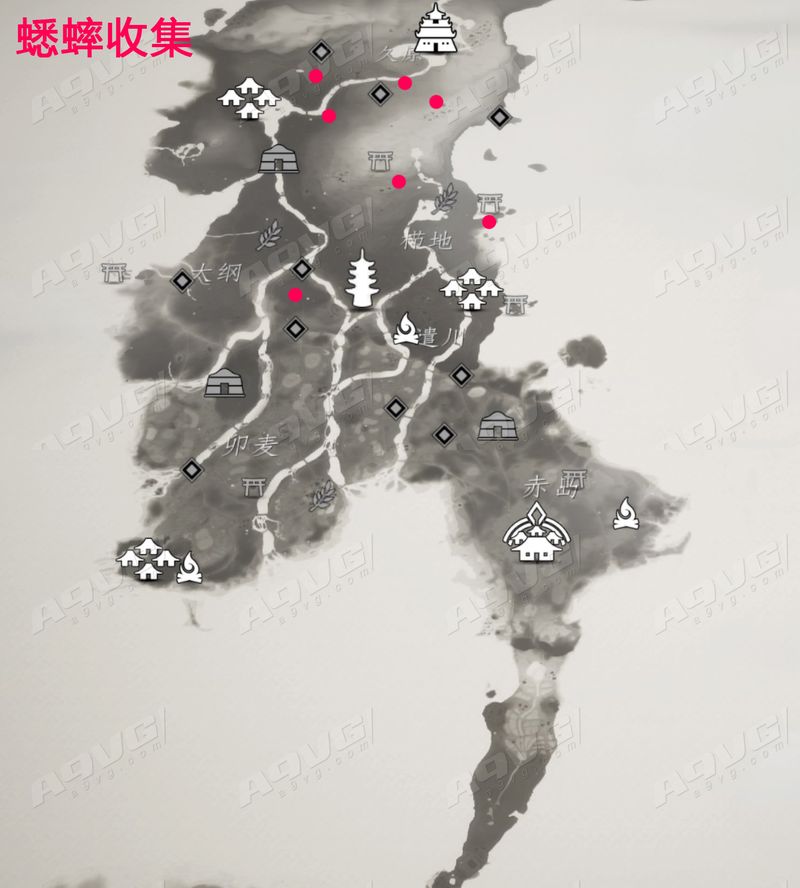 严原分布地图丰玉分布地图上县分布地图蟋蟀不会在地图上标记出来,不过可以穿着行者服装之后,在主菜单-地图界面按十字键右来选择追踪鸣叫蟋蟀。强化到顶级的时候,靠近鸣叫蟋蟀60米距离内手柄会发生震动。一般蟋蟀都出现在墓地,根据我们的配图、上表记述的位置以及行者服装的追踪功能,一般来说不算难找。此外需要注意的是,上表记述的顺序是笔者在收集时候的顺序,不一定靠的近。