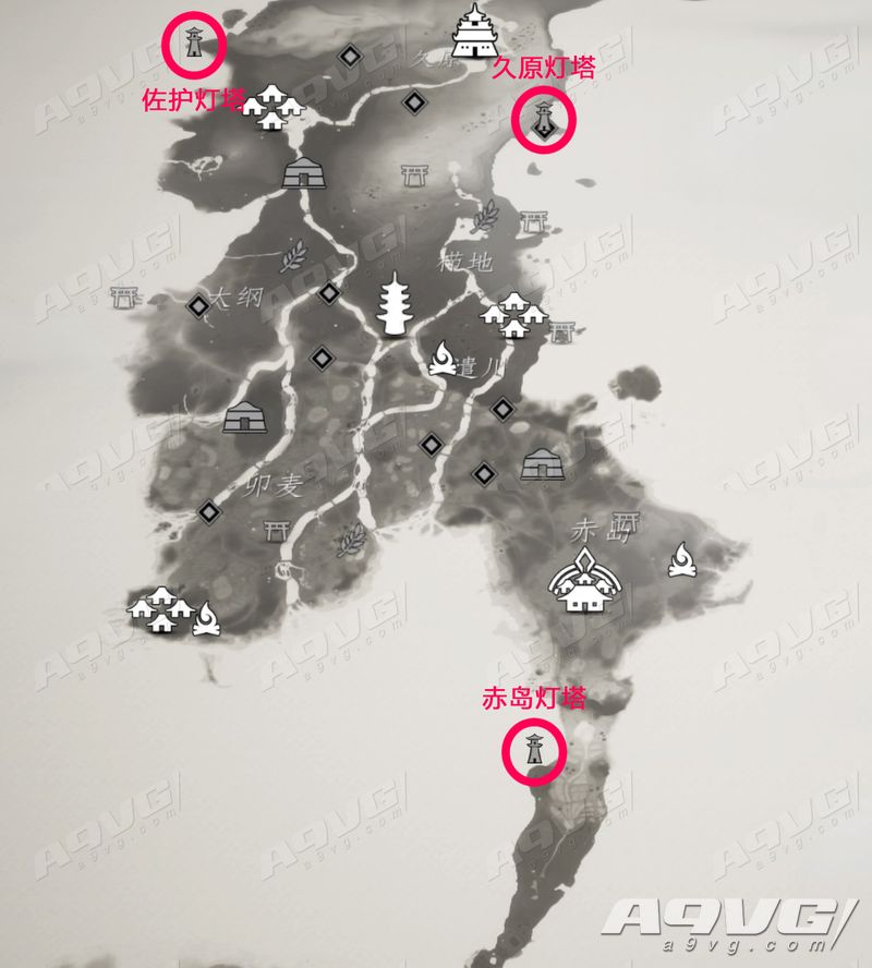 丰玉地区1、赤岛灯塔:伊藤寨附近,刚到第二章的时候会来到这里,顺手点燃即可;
