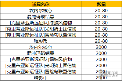 3)“幻影副本第2阶段活动箱”可以随机开出埃内尔核心,混沌玛瑙结晶,克里蒂亚斯远征队信物,暗影币等道具。