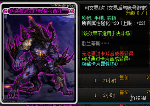 这里笔者优先附魔属强卡片,如伪装者尼尔巴斯·格拉西亚卡、宇宙恶魔:罗什(纯白)卡片,可大大提升小号的伤害水平。
