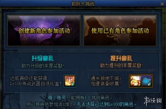 值得大家注意的是,如果你使用已有角色参加挑战活动,无法选择已达到一百级的角色。