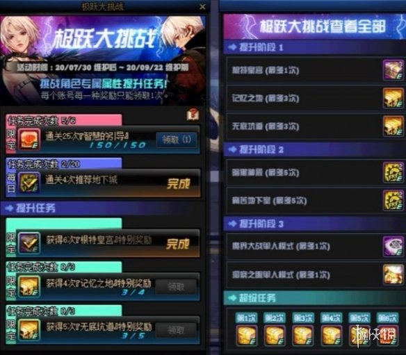 提升任务的第一阶段任务基本上就是刷根特皇宫、记忆之地和无底坑道,累计一定次数获得奖励。