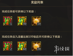 在活动期间完成指定任务即可领取丰厚奖励,【九龙玉璧信念值】达到100级后可再次领取一份奖励。