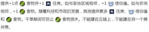 只要会规划用地,梯井的产出是非常高的,最次也能拿来提供住房。和大部分的农场UI不一样的是,梯井既可以建在沙漠上也可以建在冻土上,直接赋予了印度超强的生存能力。即使ui在游戏进程中仅仅只能起替代农田,在这个人口非常重要的资料片中的发挥是非常好的。另外同样早期能给到时代分帮助进黄金。