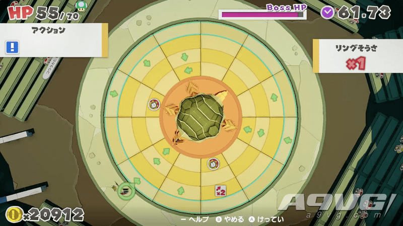 通往弱点“尾巴”的路线示意路线中,可以恢复马里奥的HP,也可以给地神祇的尾巴造成伤害。