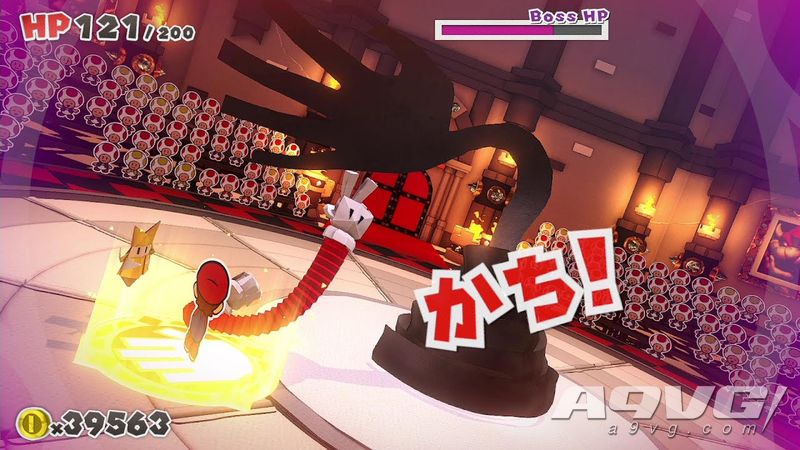 黑色之手会把最内侧圆环上的“攻击面板”吹飞。不过跳跃踩踏的攻击对BOSS是无效的,所以必须用锤子来发动攻击,然而锤子的攻击范围只有纵向2格以内,所以要想攻击BOSS就得踩踏从内而外的、第2个圆环上的攻击面板。