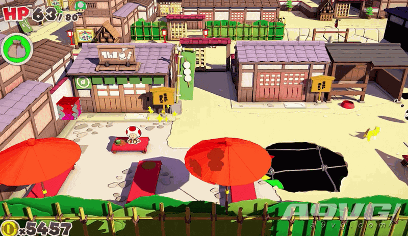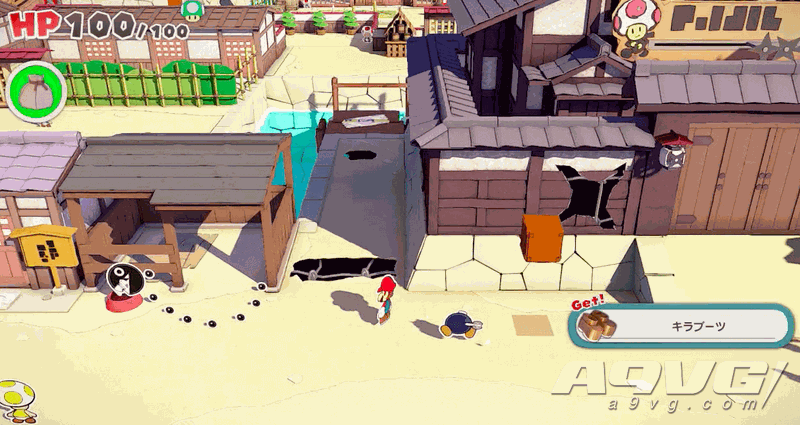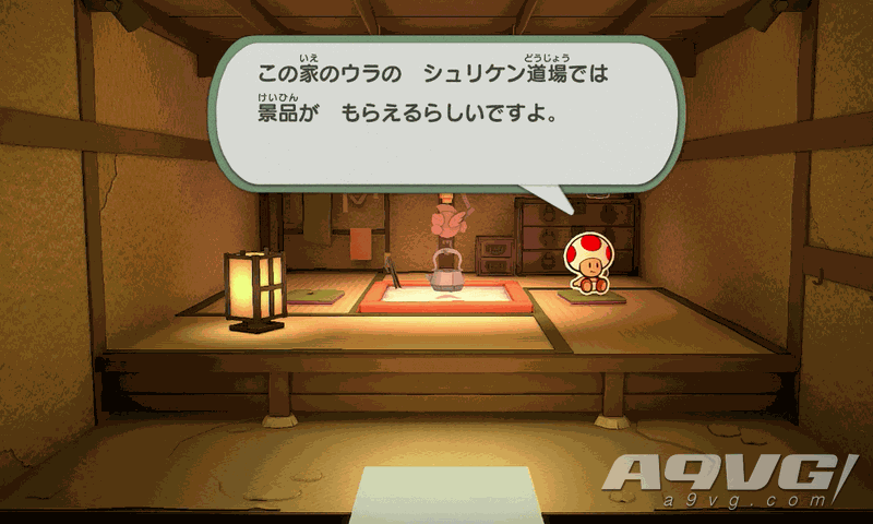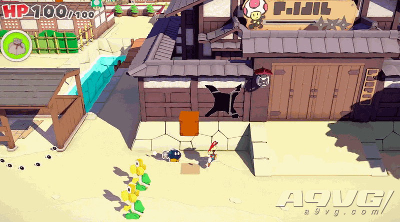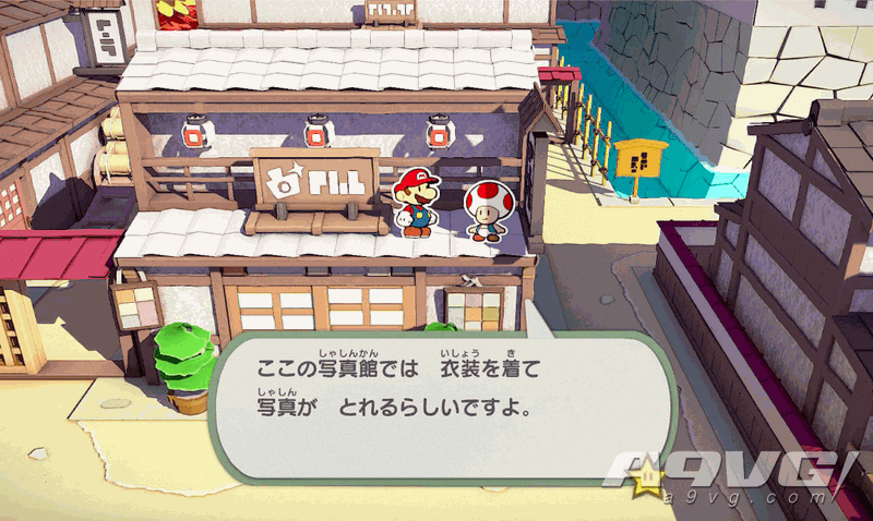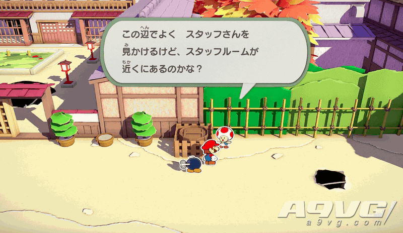 2、进入江户园地之前,先撕开大门左边的水管胶带,以便返回奇诺比奥镇