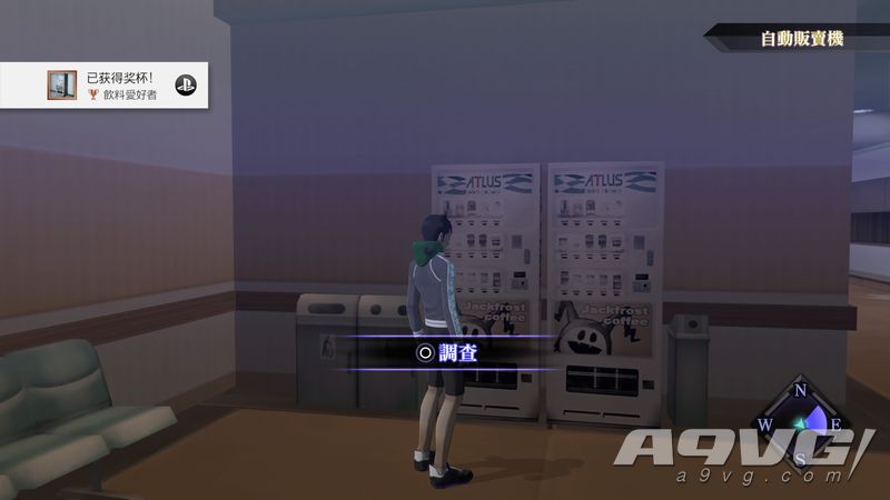 另一个在医院内,寻找新田勇的时候可以在医院二楼的自动贩卖机购买,这个购买完之后就会自动跳杯。从头开始也不算长,如果错过了的话可以立刻开个新档,用不了十分钟就可以拿到。
