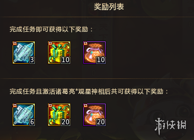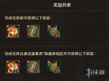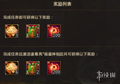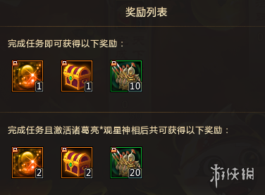 在活动期间完成指定任务即可领取丰厚奖励,激活【诸葛亮*观星神相】换装后可再次领取一份奖励。