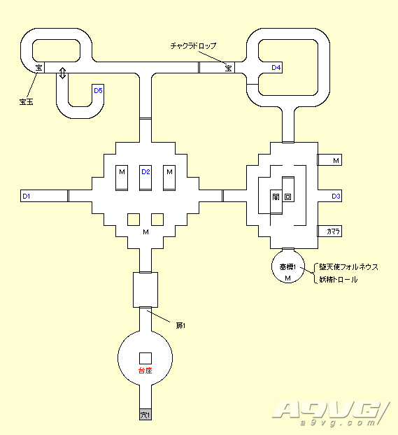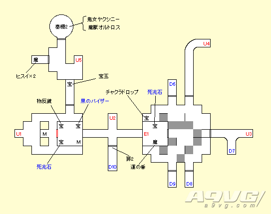 B1F:在牢房与新田勇交谈,当主角的力达到裸身24以上时才能开启牢房最里面的房门,在房间的宝箱中获得祸魂“盖亚(ガイア)”