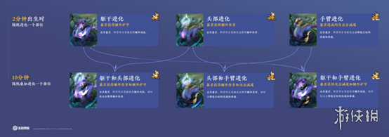 ②主宰/暴君在2分钟(首次出生时)即会有随机一个部位进化。10分钟(游戏进入中期时)会再次随机有部位发生进化,两次进化的效果会叠加。