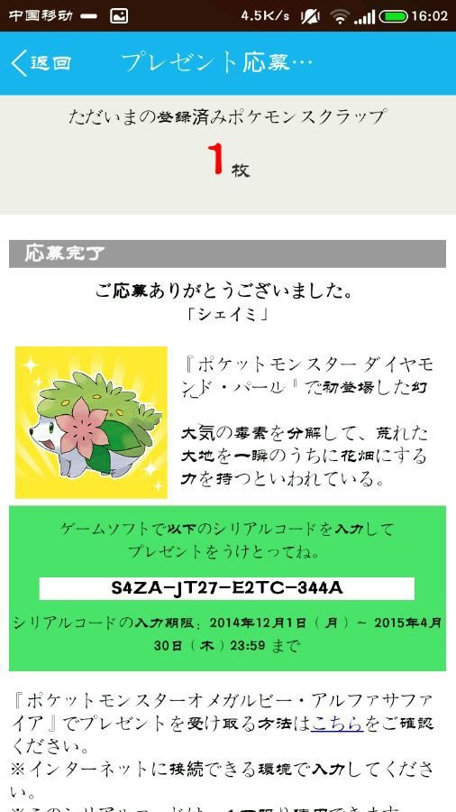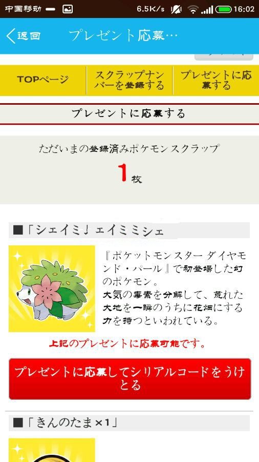 点击雪米下方的红色按钮,就能获得雪米的冲换码了,其他几只pm亦是如此