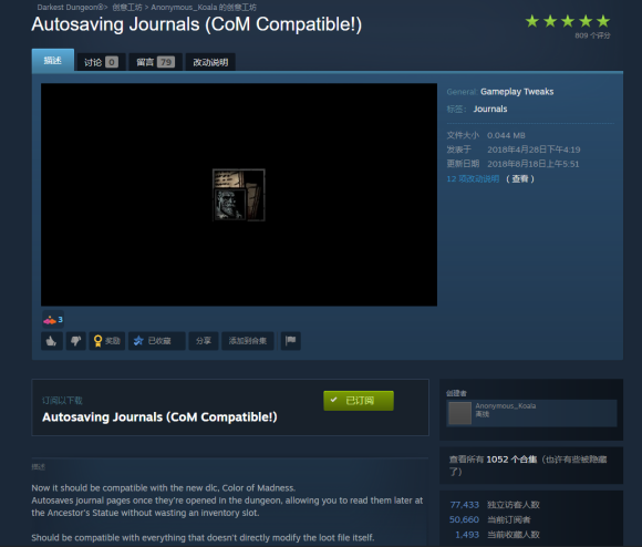此mod使你捡到游戏里的日志(剧情)后可以在城镇中的先祖雕像处阅读,不用再带着一张纸在地牢里厮杀了