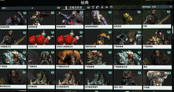 克隆尼阵营,G系科普斯 阵营,C系异变感染体,I系奥罗金,O系灵煞阵营,S系。