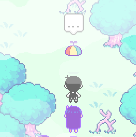 § 森林另一个梯子上去的风车岛,可以放风筝的那里,有一些需要OMORI斩开的树枝的中间有个帽子