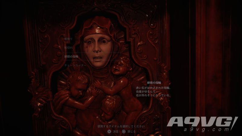 来到二楼,调查门上有张脸的门,将绯眼石装进去之后打开门锁,在某个橱柜中可以找到中庭的钥匙。之后回到一楼拿到戒指的地方,用钥匙打开中庭的门,离开,完成试玩版。