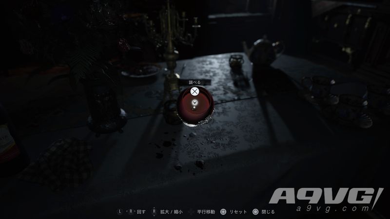 在房间内的桌子上可以捡到首饰,离开房间来到大厅。来到一楼,打开大门反方向的门来到一个新房间。捡起放在餐桌上的酒杯进行调出,调整角度可以找到酒杯中的绯眼戒指,调查戒指,将绯眼石拿下来。这时候二楼会出现三姐妹之一,不要被她发现,否则会直接结束游戏。