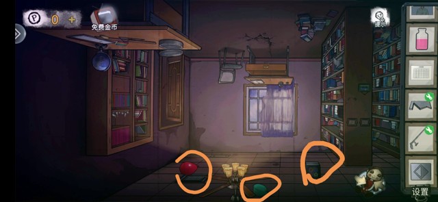 这开门杀还是挺良心的,远远的就看到它走过来,不会把人吓出什么毛病。图附书柜一层的摆法,二层需要其他房间的提示,三层缺少书本。桌上有发卡可以打开书柜里锁着的盒子得到拨片,书柜侧面有照片,按住上滑,得到藏在下面的线索照片。椅子上有把手,打开桌子上的抽屉得到拨片。地上有地缝,书桌上有墨水,书本里有开门的线索和镇静剂的制作方法。把拨片安装在门上,根据刚才捡到的提示开门。