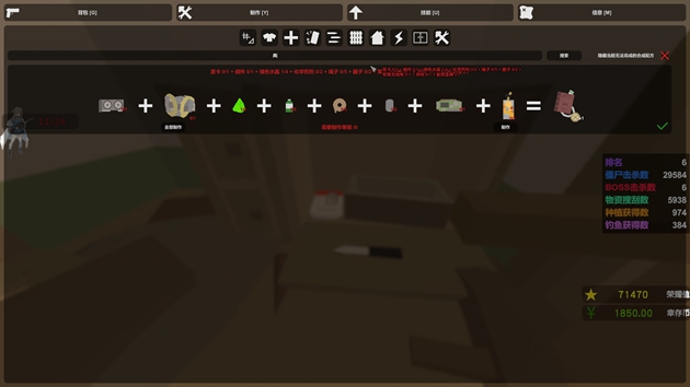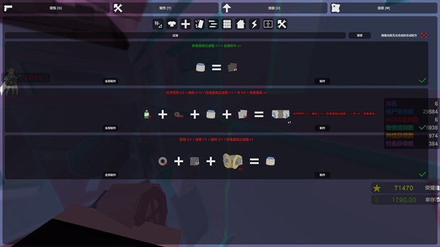 优先做出滤毒管(滤网空头刷新)然后将他和一些材料合成就成为了防毒面具如下图