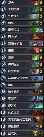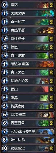 青玉德这套卡组可谓是当今天梯T0卡组,凭借着一张传播瘟疫在前期苟活,凭借着终极感染在后期强势返场,又由于青玉护符的存在,在后期一个青玉比一个大,打的对面欲哭无泪,故将青玉德排在这份榜单的第三名。