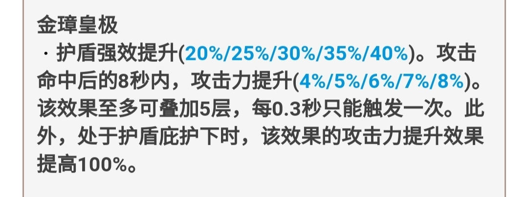有护盾角色的情况下,一精有40的常驻攻击加成。