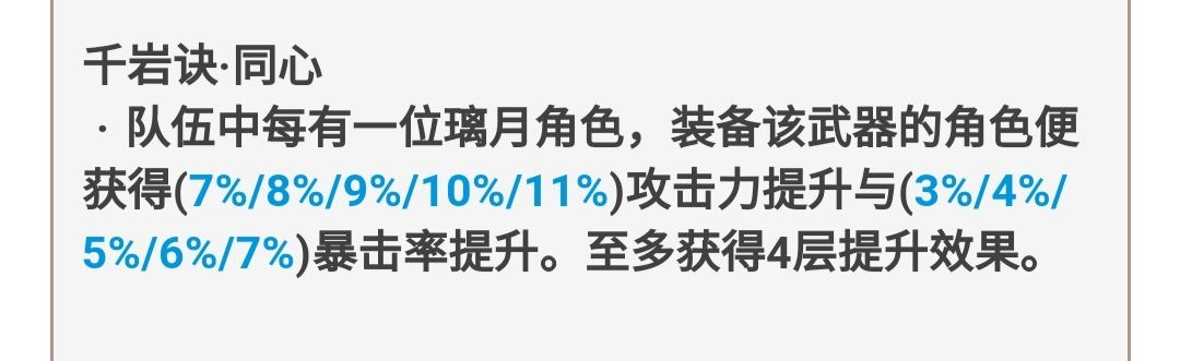 高精情况下吃满有40左右的攻击力加成,24左右的暴击加成,非常奈斯。璃月队首选。