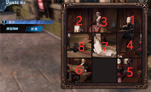 新图如下(PS:直接按照1-9图块,将打乱后的记忆碎片移动对应位置即可。)