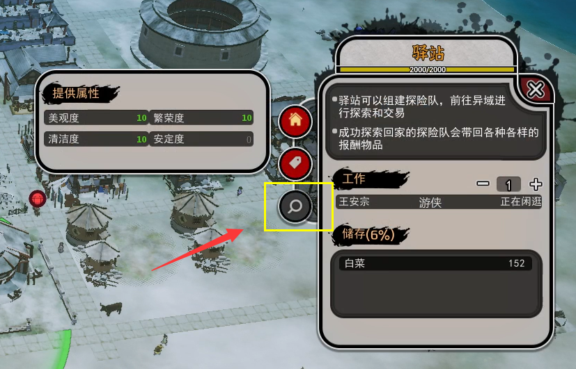 驿站的标签下方有个放大镜,点开里面有寻宝选项,出发一年后回,能找到商行都没有的奇观图纸和摆件。