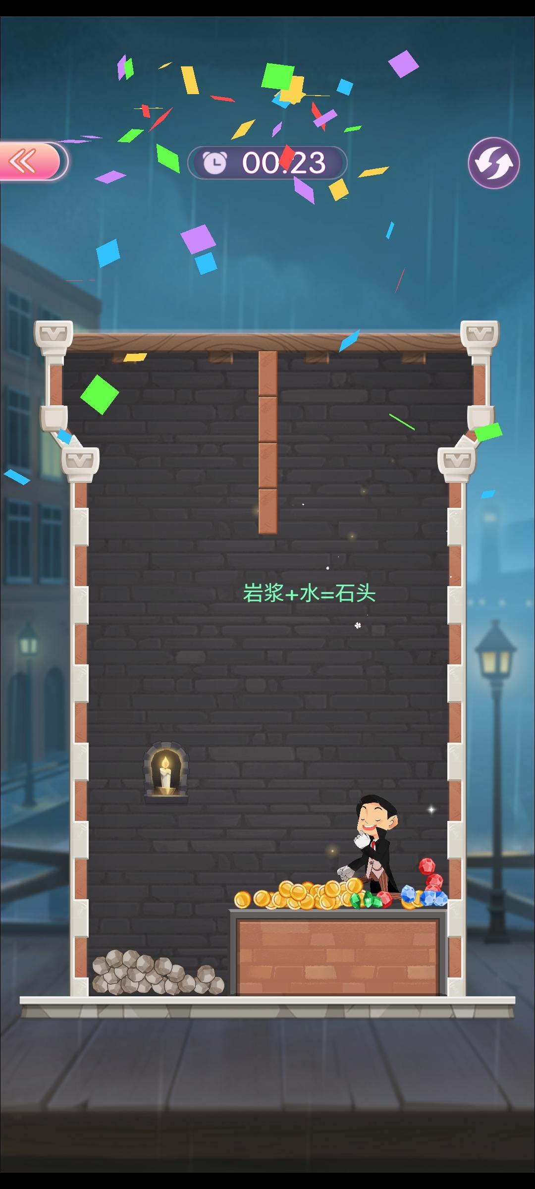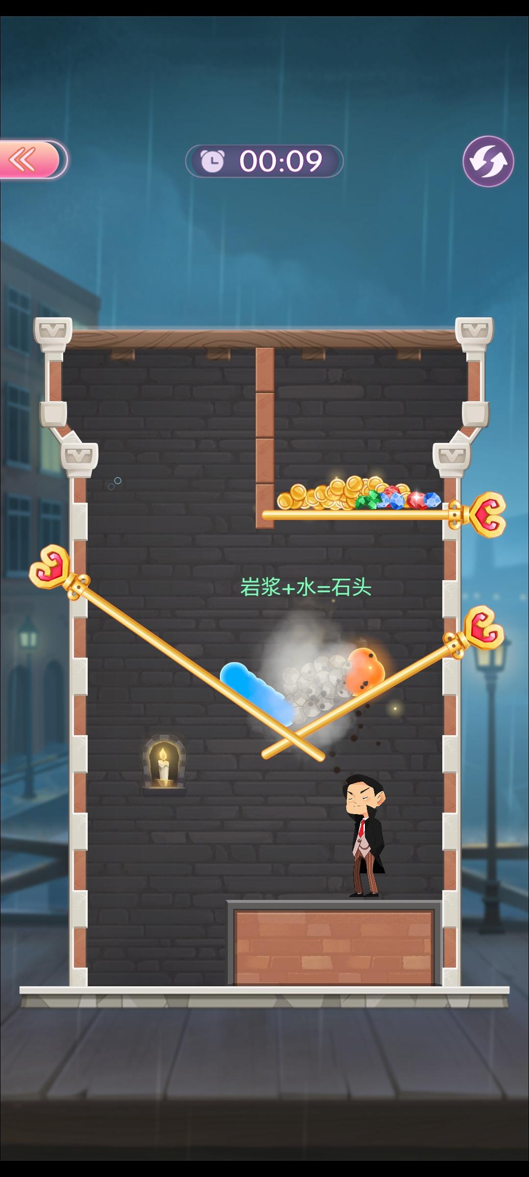 第六关先把🔥水放下来,变成石头。再放他们下来。