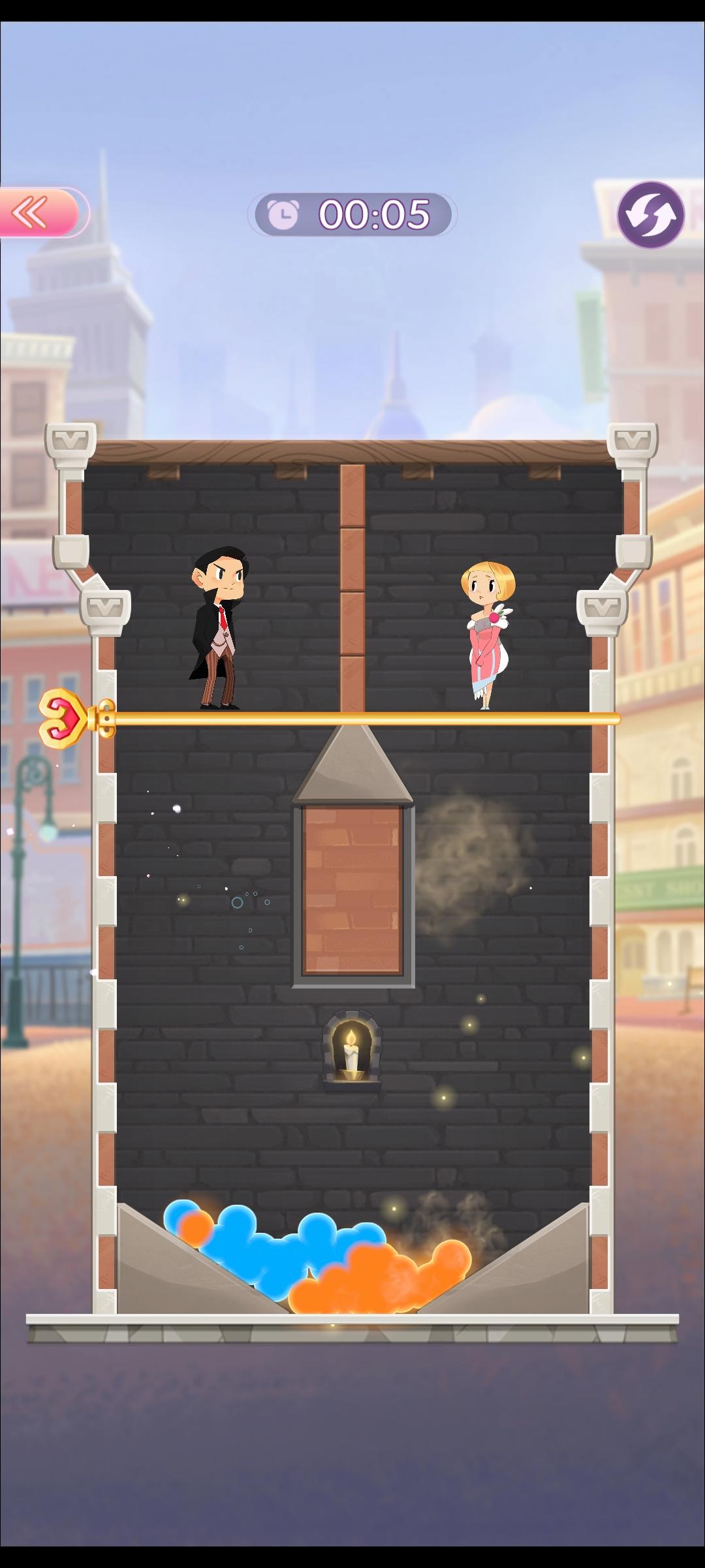 第五关,把水先放下来浇灭🔥然后再放她下来