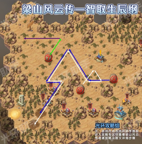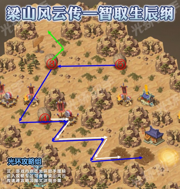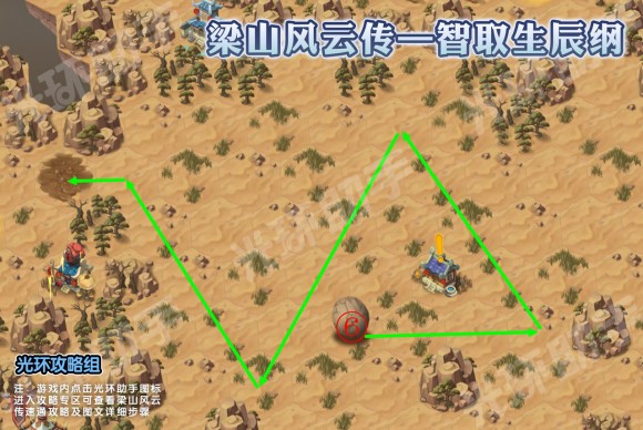 《小浣熊百将传》梁山风云传智取生辰纲攻略本地图主要难点在于石球的推动路线,不同步骤的推动路线会以不同颜色表示,玩家请留意不要串线。(攻略路线由达人 灯火醉阑珊 提供,最终宝箱由