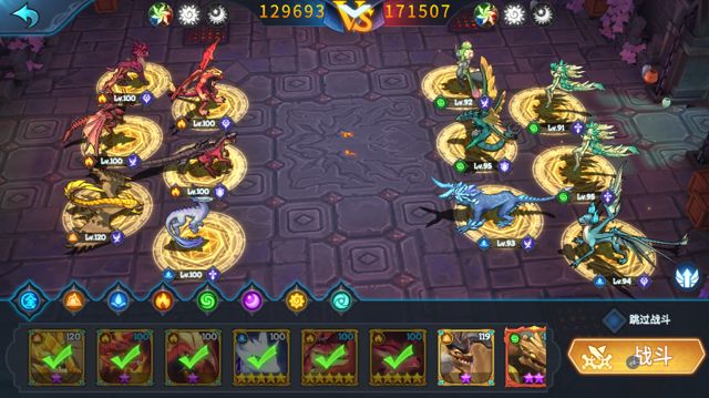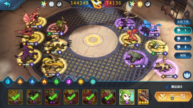 高阶竞技场为三局两胜制,而这里的三局要求玩家必须出三队完全不重复的队伍(也就是一共不重复的18只龙),与敌方三队进行对打。