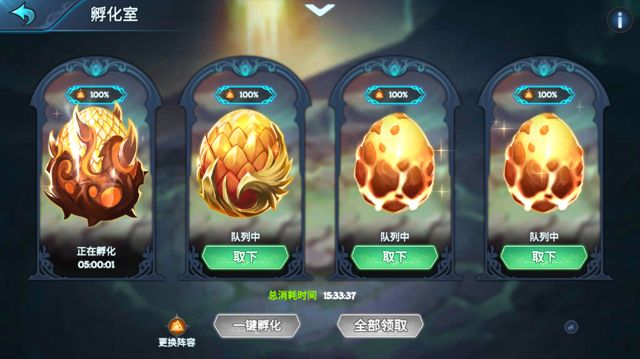 孵化的时候需要选择母体(三星以上),根据母体决定龙蛋产物的属性和孵化时间。