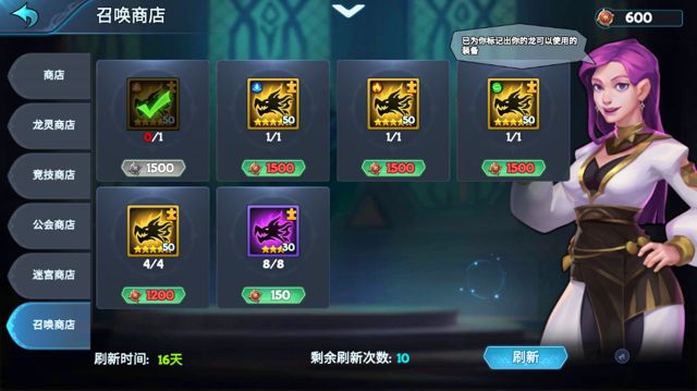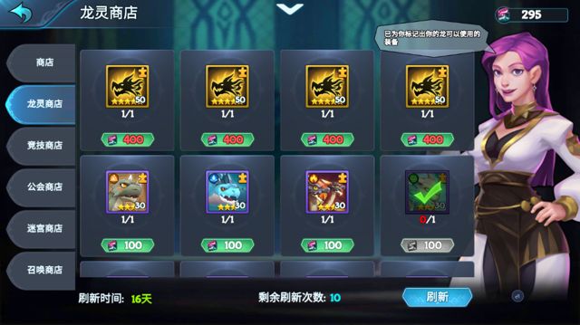 -龙灵商店:龙灵碎片(孵化和分解龙获得)——可购买龙碎片、指定龙和装备养成道具