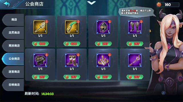 -公会商店:公会币(工会活动获得)——可购买装备