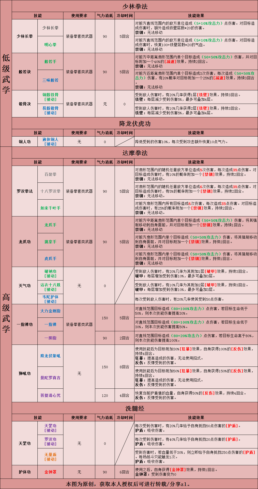 【内门】:成为内门弟子的我们可以学习功法降龙伏虎功获得气血加成,也算踏出极为扎实的第一步。基础700气血20回气,建议满级!4300气血加成让北少林弟子成为一个耐操的光头硬汉。