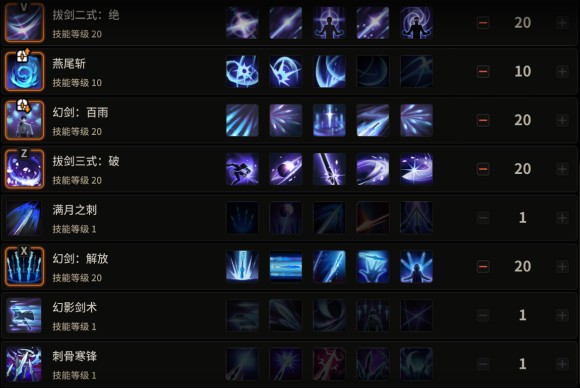 这个技能可以说是我最纠结的技能,等级较低的时候一度感觉像猴戏伤害也低,一次次洗掉又一次次学回来。但觉醒之后看见觉醒的被动,我才知道这技能是幻影的灵魂之一,能够快速叠觉醒被动增加伤害,加上众多传说武器对拔一的加成,退一万步10次共计18000%的百分比就没理由不加满,在大技能CD时补充输出效果很不错。建议加满。