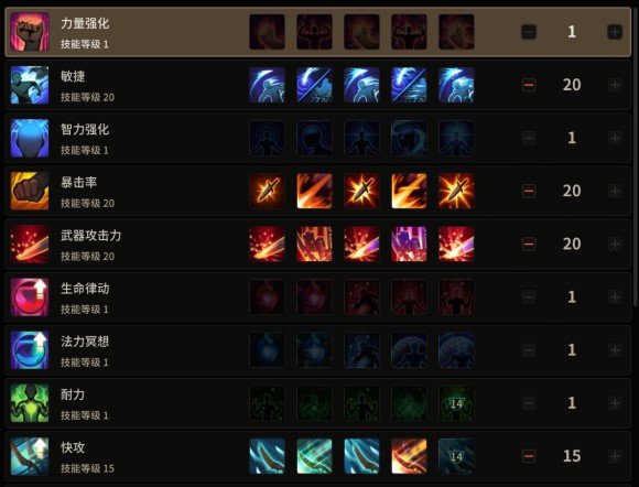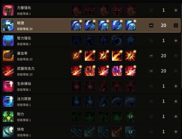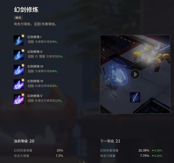 基本可以跳过,只有【双剑挥舞】3级效果加攻击力可以留意一下,不过幻影小技能众多,也没有太多间隙穿插平A,可以忽略。