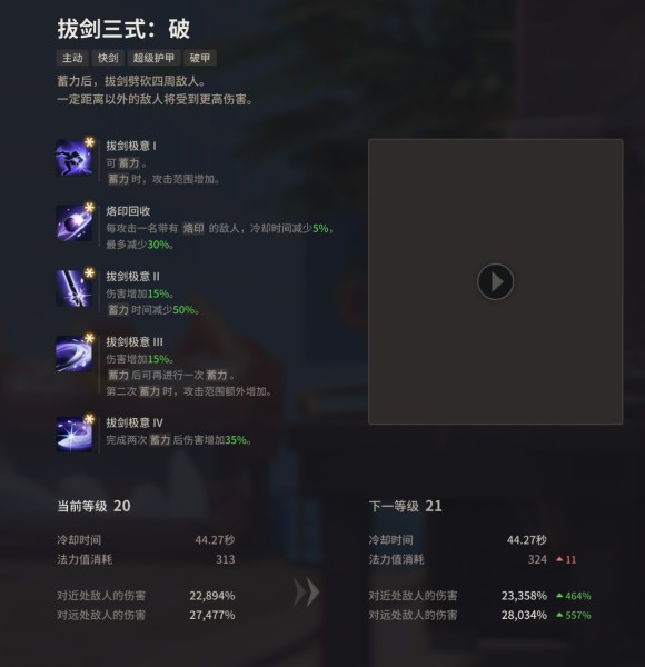 以前玩的就是剑魂,这个技能不冲别的,光这个造型我必加满!言归正传,这个技能可以看到各阶段效果是围绕伤害增加及减cd来的,是一个非常优秀的清小怪技能,本身cd不算长,伤害百分比也不错。建议加满。