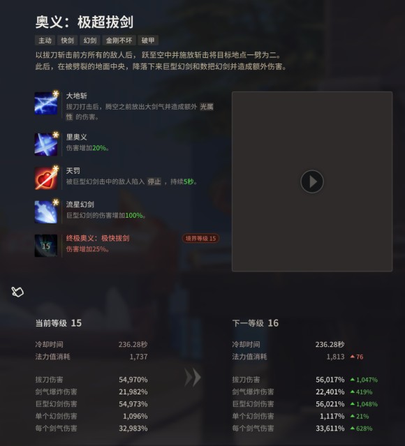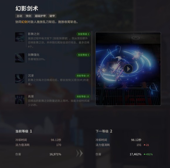 这个也没啥好说的,幻剑、光属性、BUFF快剑技能、短CD,绝对的主力输出技能,没理由不加满。建议加满。