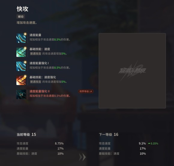 本身是PK技能,但需要留意的是15级可以增加攻击速度(关于攻击速度的加成大家不懂可以去科普一下),增加值不高,技能点充裕可以选择尝试,毕竟攻击速度也会加成战斗力。建议不加。
