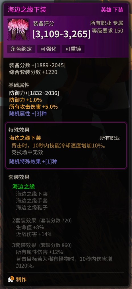 传说套装首选【信使套】,全部装备围绕对于主属性的加成。
