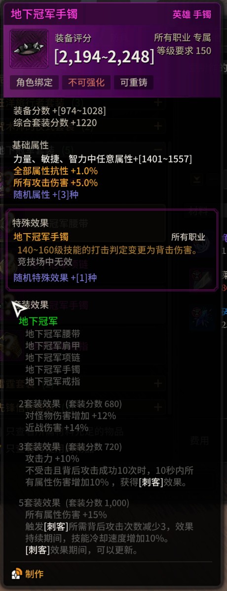 手镯——T1暴击率 T2敏捷、全属性强化 T3稀有怪增伤
