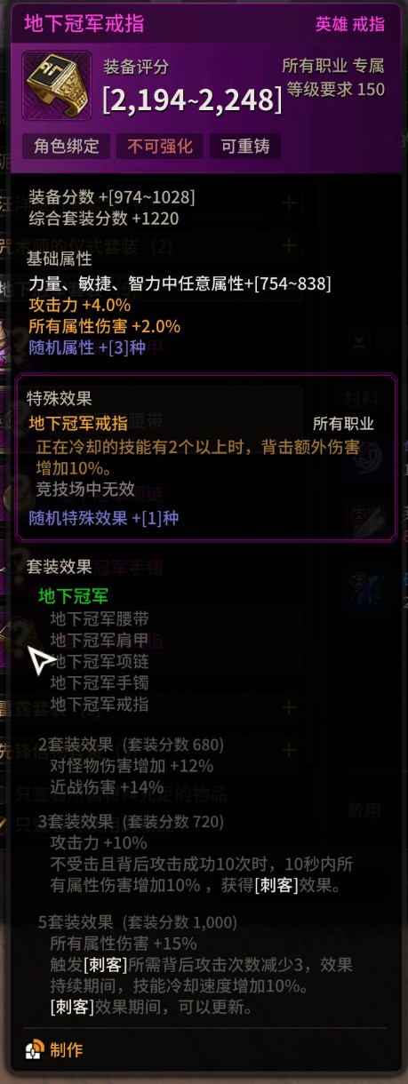 戒指——T1爆伤 T2敏捷、全属性强化 T3命中率