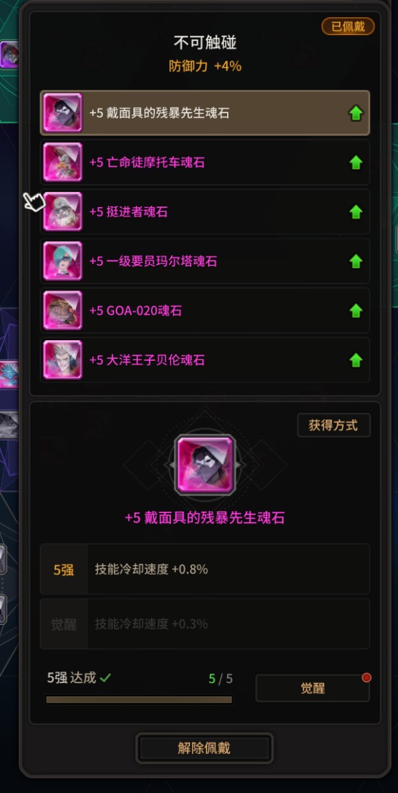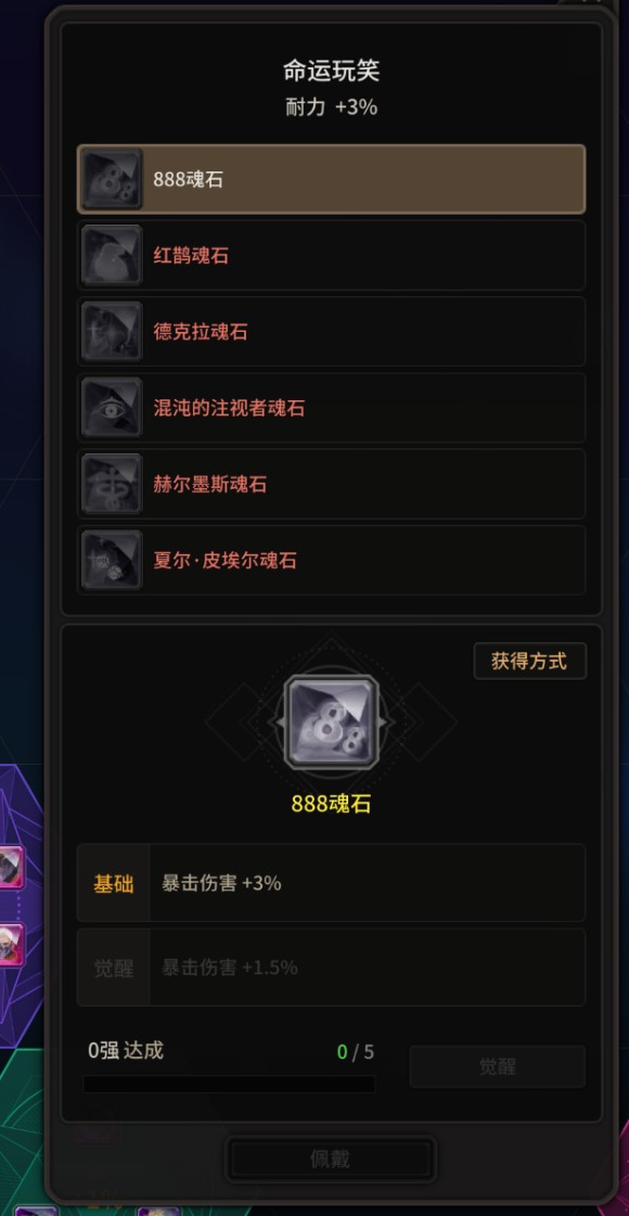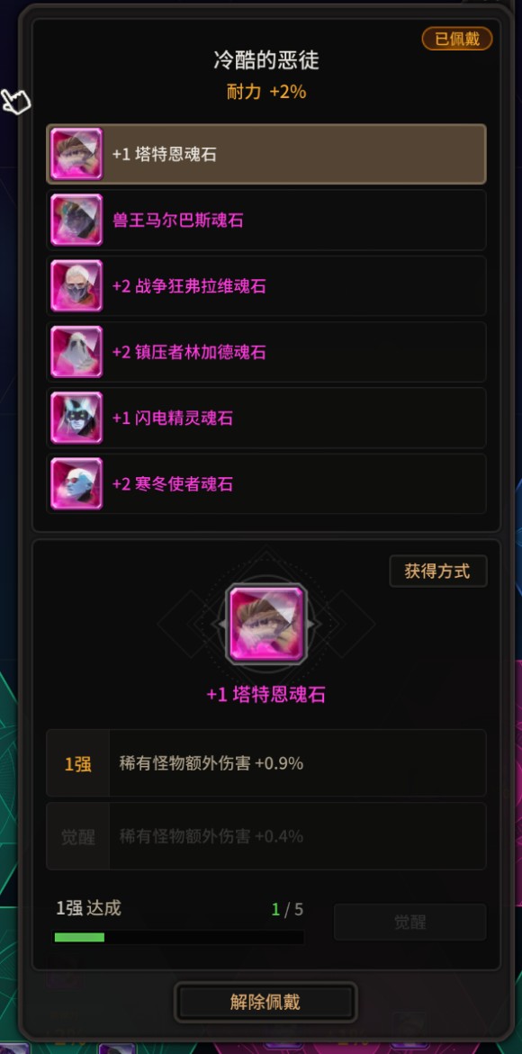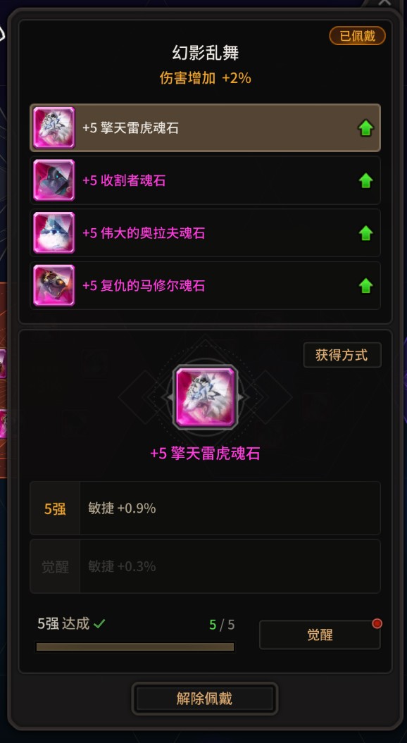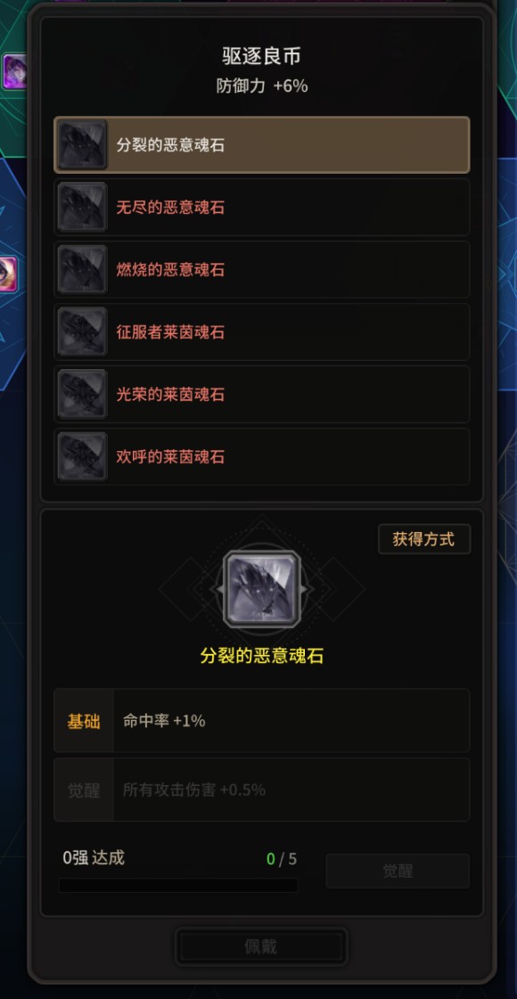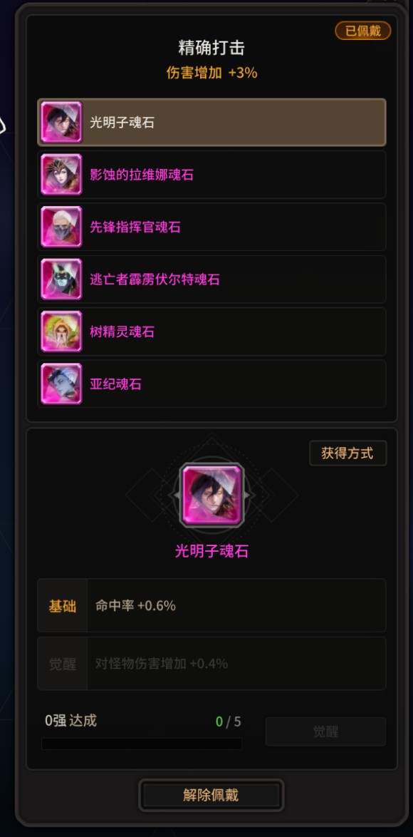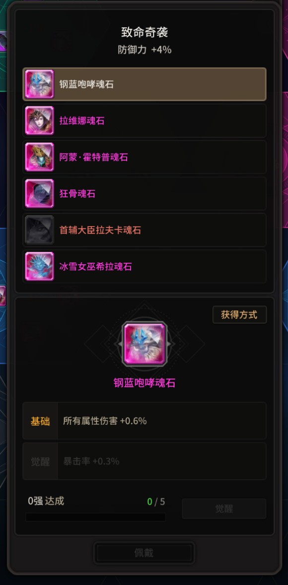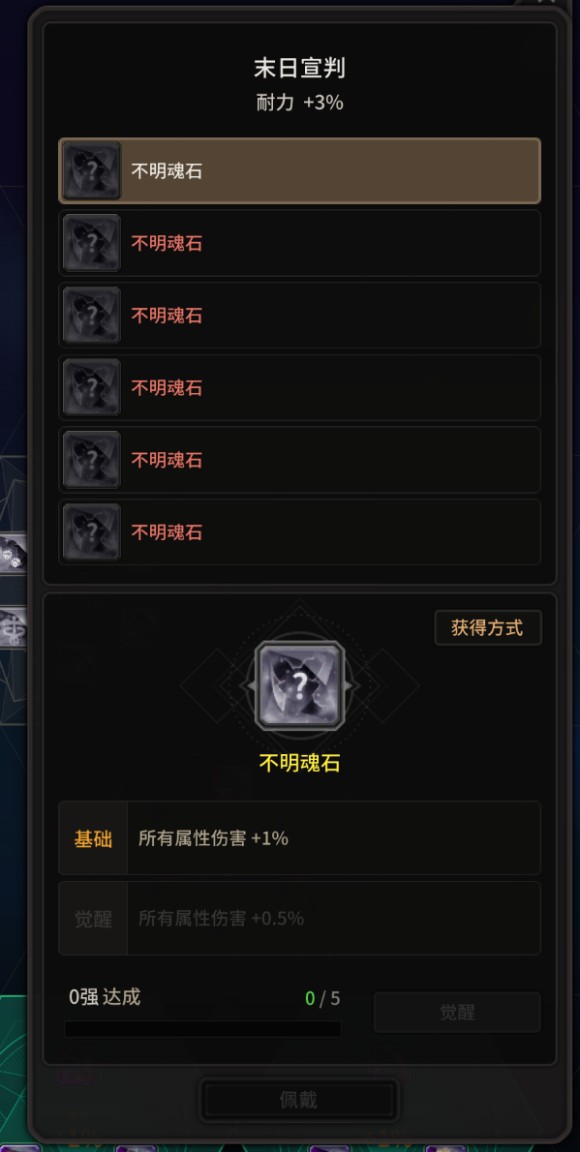 关于魂石,目前来说分为佩戴与收集两种方式,佩戴是指将魂石阵装备到右侧佩戴槽中,单个魂石的属性才会生效。