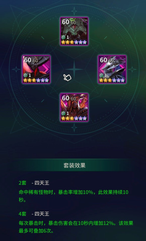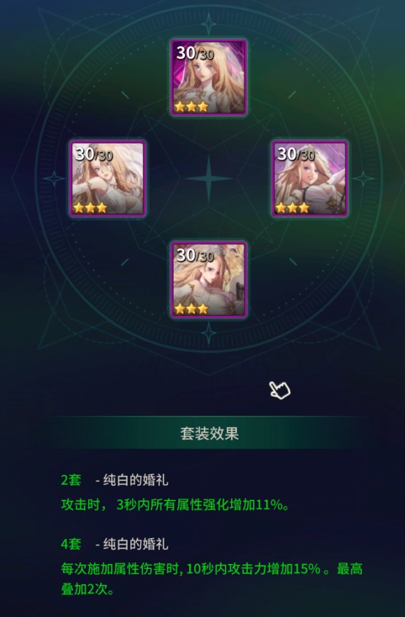 讲真目前我看来两套卡牌套装属性差别不大,但单卡属性的加成对于幻影来说四天王是高于婚礼不少的,所以我选择的是四天王。没有四天王的完全也可以使用婚礼,差别不算很明显。