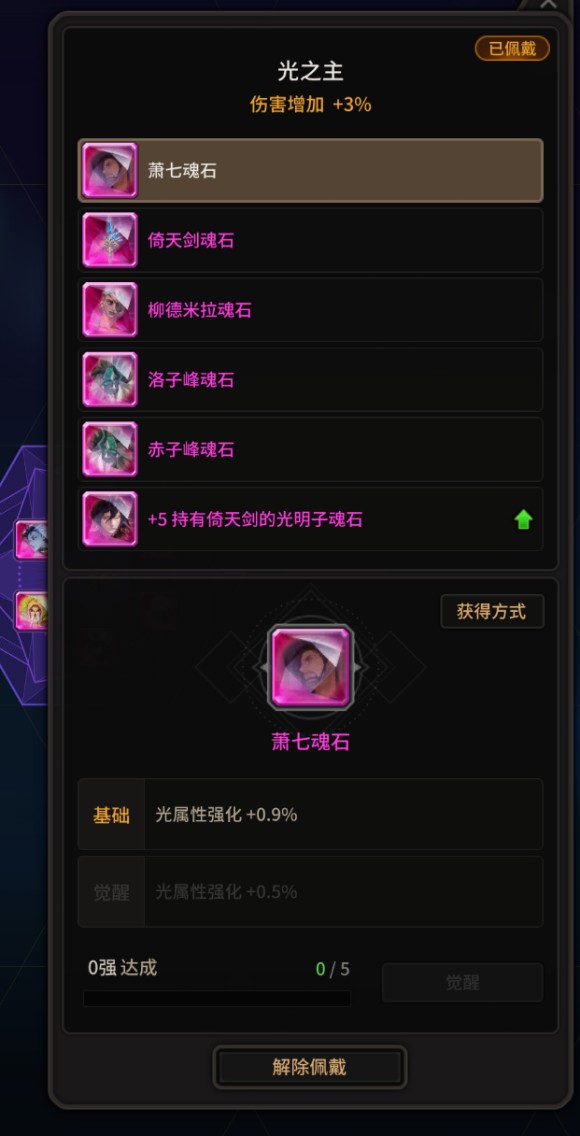 所有按照这个思路,我们只需要强化会长期佩戴魂石阵中的魂石,而单体属性不好但收藏效果好的,我们只需要拥有一个该魂石点亮魂石阵即可。