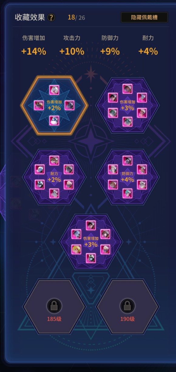而收藏是指,只要你将某魂石阵中全部魂石点亮,即使不装备到佩戴槽中,其属性加成都会生效,并体现在右侧收藏效果中。